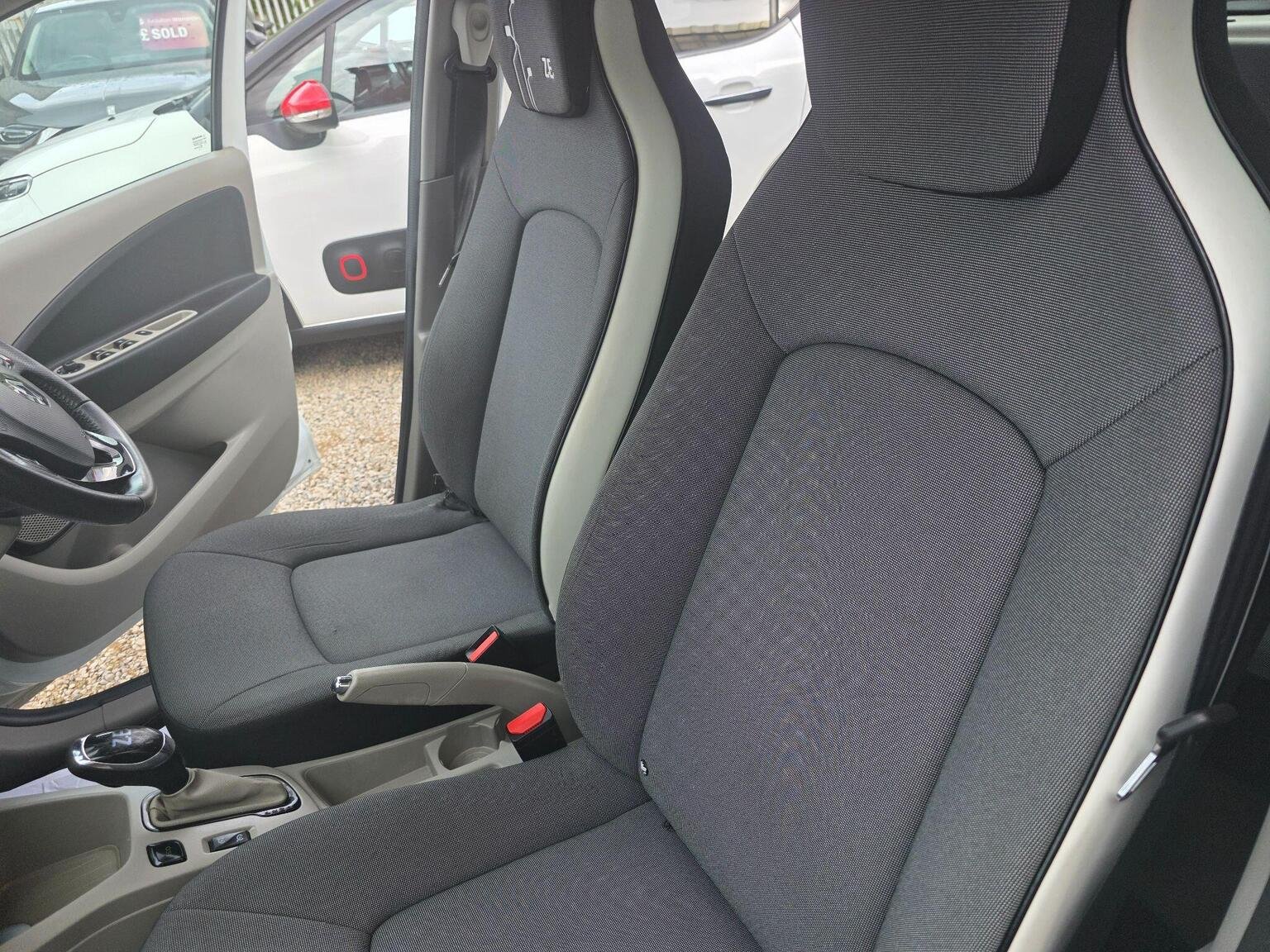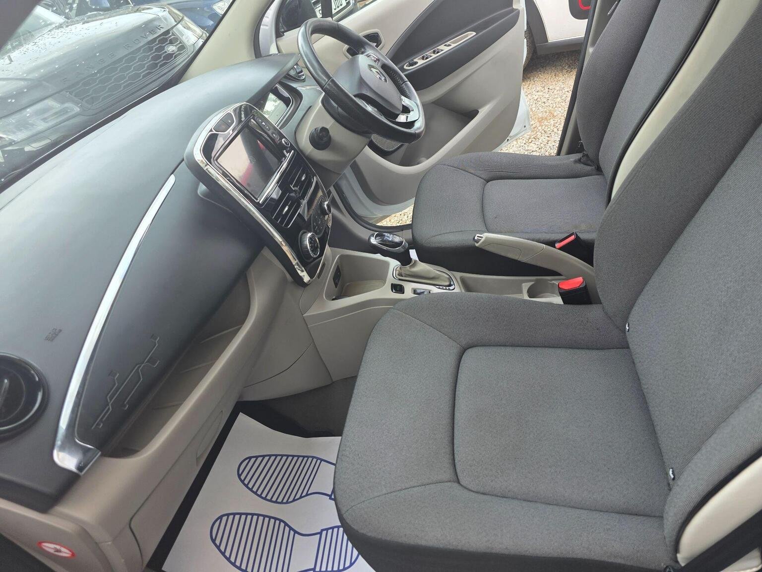 Z.E. Interactive - 1yr Subscription, Z.E. Pre-Conditioning of Interior Temperature from Inside Vehicle - Activate Air Con - Heater Whilst Charging, Z.E. Signature - Chrome Blue Renault Logo and Z.E. Rear Badge, 12V Power Socket, 16in Alloy Wheels - Aerotronic, 2x Front Cupholders, ABS - Anti Lock Brakes, ASR - Traction Control, AUX Input, Airbags - Driver, Airbags - Front Curtain, Airbags - Front Passenger, Airbags - Front Passenger Deactivation, Airbags - Side, Arkamys 3D Sound 4 x 35W DAB Radio, Ash Tray, Automatic Emergency Lights Under Heavy Braking, Automatic Headlights, Automatic Windscreen Wipers with Rain Sensors, Battery Gauge, Bluetooth Hands Free System, Bumpers - Body Coloured, CSV - Understeer Control, Carminat TomTom Satellite Navigation, Chameleon Charger, Charge Cable - Type 2 - Mode 3 with Z.E. Bag, Cleanable Luxury Mats, Cleaning kit, Climate Control with Temperature and Humidity Sensors, Combined Filter, Connectivity - All R-link applications including email - R-Link Tweet - Renault Assistance and Weather +TomTom LIVE Services - 1 year subscription, Cruise Control with Speed Limiter, Daytime Running Lights - LED, Deadlocking, Door Handles - Body Coloured - Front, Door Mirrors - Black Gloss Housing with ZOE Designer Signature, Door Mirrors - Electrically Adjustable - Manual Folding and Heated, Double Antenna, EBA - Emergency Brake Assist, EBD - Electronic Brake Distribution, ESC - Electronic Stability Control, Eco Mode Button, Econometer, Electric Windows - Front and Rear with Driver One-Touch - Anti-Pinch Functionality, Electronic Engine Immobiliser, Estimated Range, Front Charger Socket - Charging Flap Under The Renault Logo, Front Door Bottle Storage - 1.5 ltr, Front Grille - Black with Z.E. Blue Surround, Gear Knob - Leather, Glovebox - 7 litres, HSA - Hill Start Assist, Headlights - Bi-Halogen Optical Projector, Headrests - Integrated Front, Headrests - Outer Rear Height Adjustable, ISOFIX - Child Seat Fixing Points - Outer Rear Seats, Intergrated Millage Counter, Interior - Dynamique, Invisible Rear Door Handles, Keycard - Handsfree - Automatic Opening Upon Approach, Parking Sensors - Rear, Power Assisted Steering, R-Link 7in Touchscreen Embedded Tablet with Voice Control, RAID - Renault Anti Intruder Device, Rear Parking Camera with Rear Parking Sensors, Remote Monitoring of Battery, Remote Pre-Conditioning and Charge Scheduling, SD Multimedia, Seatbelt Warning Sound, Side Indicators on Door Mirror, Speakers - 2x Front - 2x Rear - Bicones, Speakers - x2 Front Tweeters, Steering Column - Reach and Rake Adjustable, Steering Wheel - Leather, Storage - Front Centre Console, Storage - Front Seat Back Pockets - Passenger, Sun Visor - Driver and Passenger - Vanity Mirror, TFT Display Screen, Trip Computer and Style Indicator, Tyre Pressure Monitoring System, Tyre Repair Kit, USB Connection, Voice Control, Windows - Privacy Glass on Rear, Z.E. - Voice - Low Speed Pedestrian Warning, Z.E. Blue Tinted Front and Rear Windows, Z.E. Chrome Blue Headlight Surrounds
